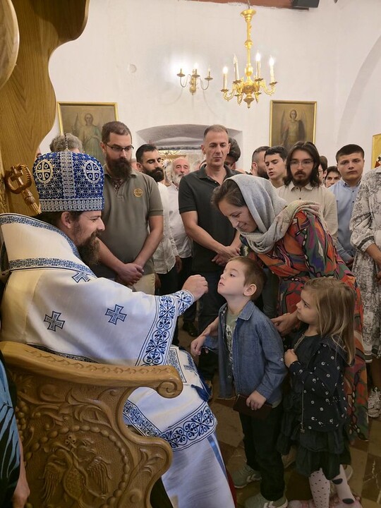 На крају Свете Литургије освештани су славски приноси и пререзан је славски колач, а потом се сабранима обратио и празник честитао епископ Пајсије.