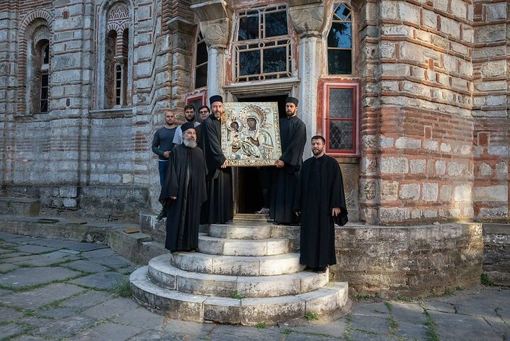 У пратњи јеромонаха Нектарија и монаха Силуана Хиландарца, са верним преписом Иконе Пресвете Богородице Тројеручице, кренули су данас ка Црној Гори.