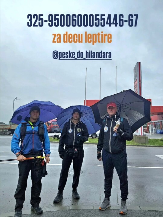 Страхиња Бјелић, Владимир Пенезић и Марко Маринковић симболично су кренули из Храма Светог Саве у Београду, с благословом Владике милешевског Атанасија. На Хиландар би требало да стигну за двадесет дана.
