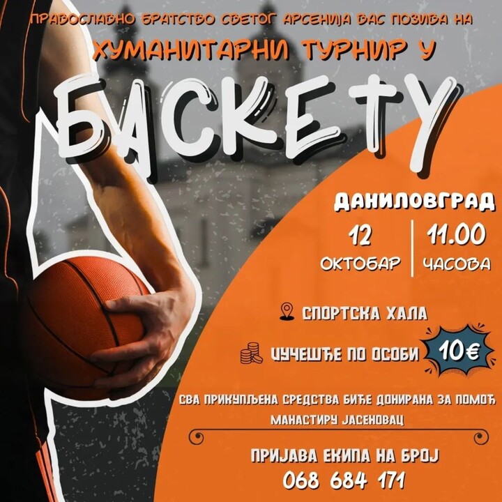 Православно братство Светог Арсенија из Даниловграда организује хуманитарни турнир у баскету.