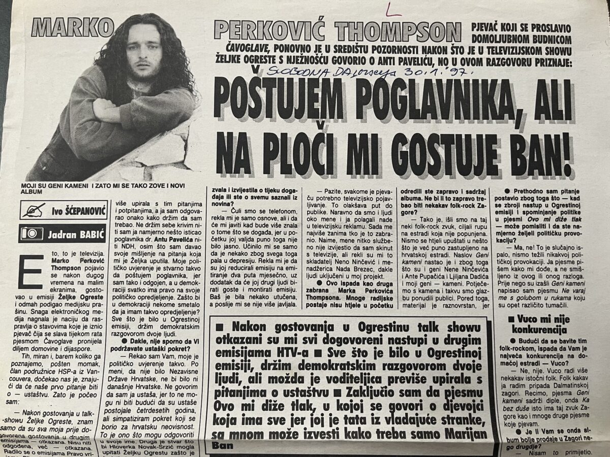Пријава, која је поднета пре десетак дана уз подршку грађана који су преживели усташке и нацистичке злочине, терети популарног певача да је овог лета на концертима у Загребу и Сињу више пута узвикивао усташки поздрав „За дом спремни“ у склопу извођења песме „Бојна Чавоглаве“.