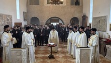 Након Литургије је по благослову Епоскопа пакрачког и славонског г. Јована на молитвено поклоњење параклису Богословије дарован дио моштију Светих новомученика јасеновачких.