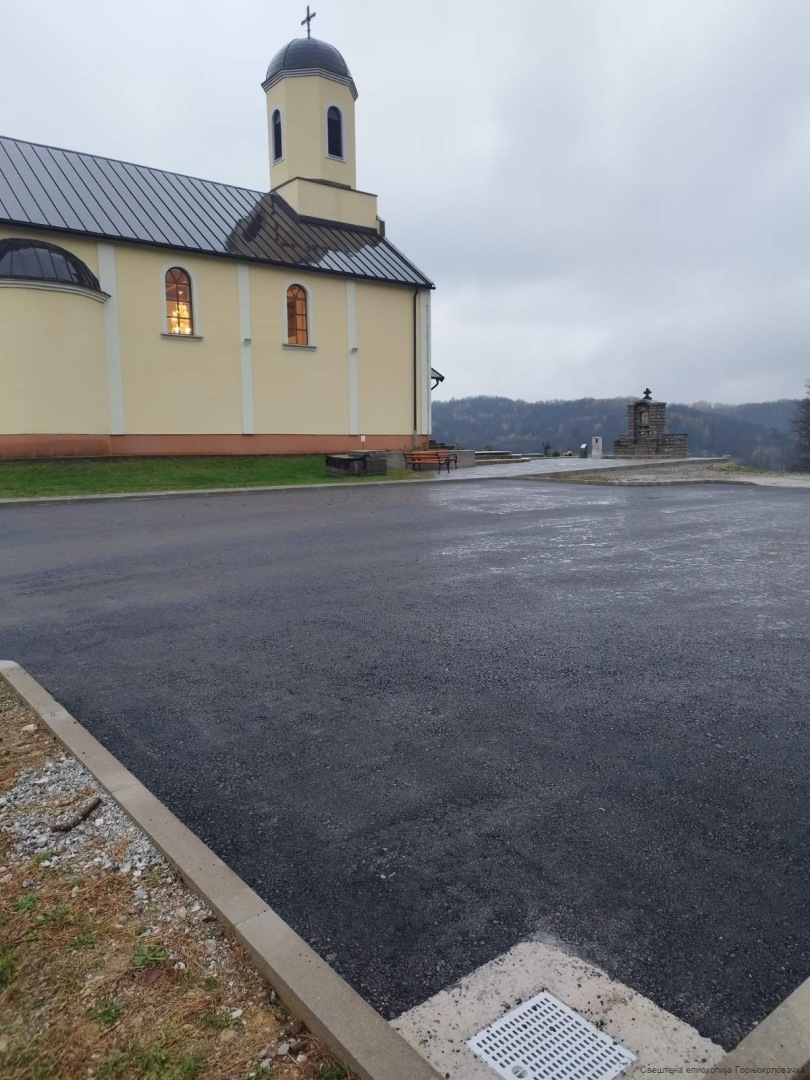 Постављени су и ивичњаци за паркинг у порти храма који је асфалтирала Општина Ласиња, као и дио прилазног пута.