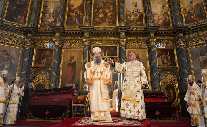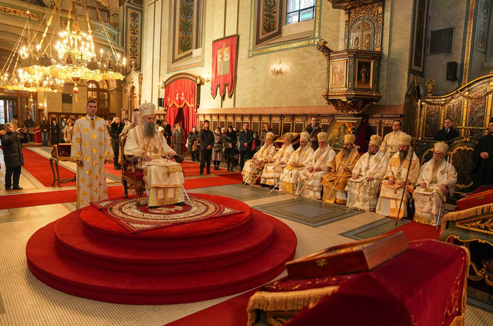 У Саборној цркви у Београду свечано је обележен Јовањдан, крсна слава патријарха Порфирија, уз саслужење архијереја и присуство истакнутих гостију.