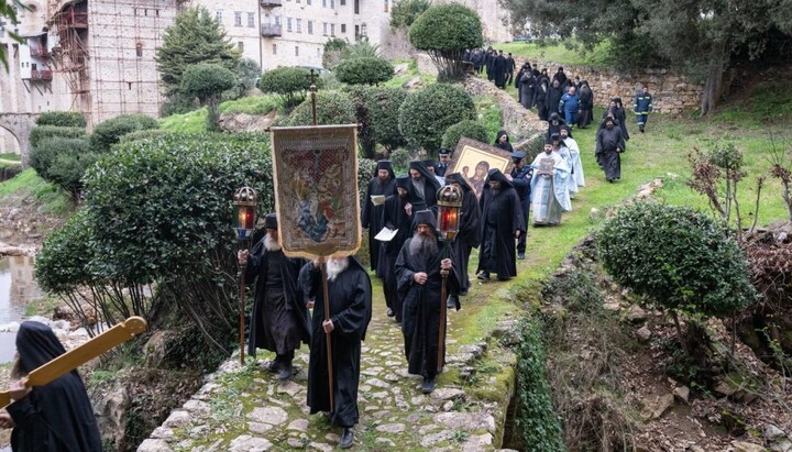 Након свеноћног бденија и Свете литургије, предвођена преписом иконе Пресвете Богородице Тројеручице, уследила је литија до оближњег потока подно манастирских зидина.