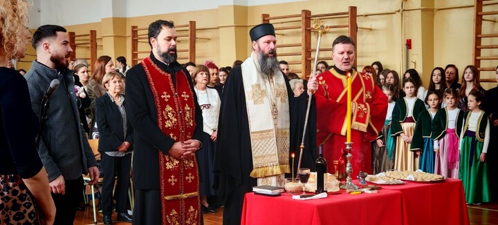 У ОШ „Владислав Рибникар“ прослава светог Саве обележена је молитвом, духовним програмом и беседом викарног Епископа новобрдског Илариона.