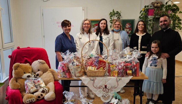 Парох копривнички протојереј Радован Димитрић, у пратњи супруге Зорице и кћерке Христине, посетио је педијатрију. Тамо су их срдачно дочекале начелница одељења др Маја Тот-Мршић и главна сестра Драженка Петриц, са медицинским особљем.