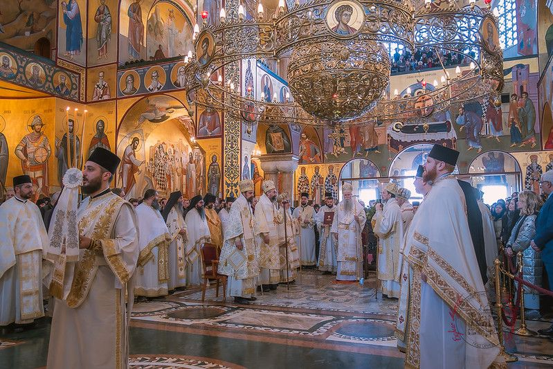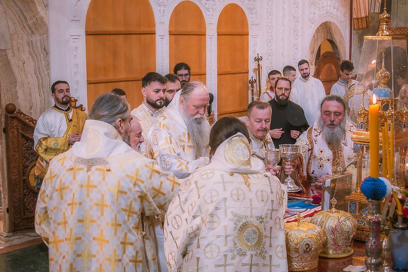Свету Литургију у Саборном храму Христовог Васкрсења служио је Митрополит црногорско-приморски Јоаникије, уз саслужење више архијереја: Митрополита милешевског Атанасија, Митрополита захумско-херцеговачког и стонско-приморског Димитрија, Епископа будимљанско-никшићког Методија, Епископа делчевско-каменичког Марка из Македонске Православне Цркве – Охридске Архиепископије и викарног Епископа диоклијског Пајсија, као и бројног свештенства, монаштва и верног народа.