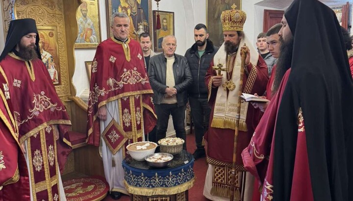 Епископ диоклијски г. Пајсије благосиљао је кољиво у част Светога великомученика Теодора Тирона.