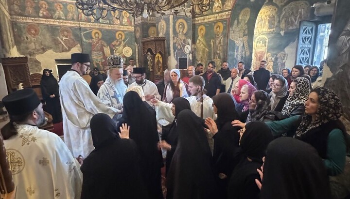 За певницом су појале монахиње манастира, док је богослужењу присуствовао велики број верника, који су се у духу празника сабрали да узму учешћа у евхаристијском сабрању и приме Свету Тајну причешћа.