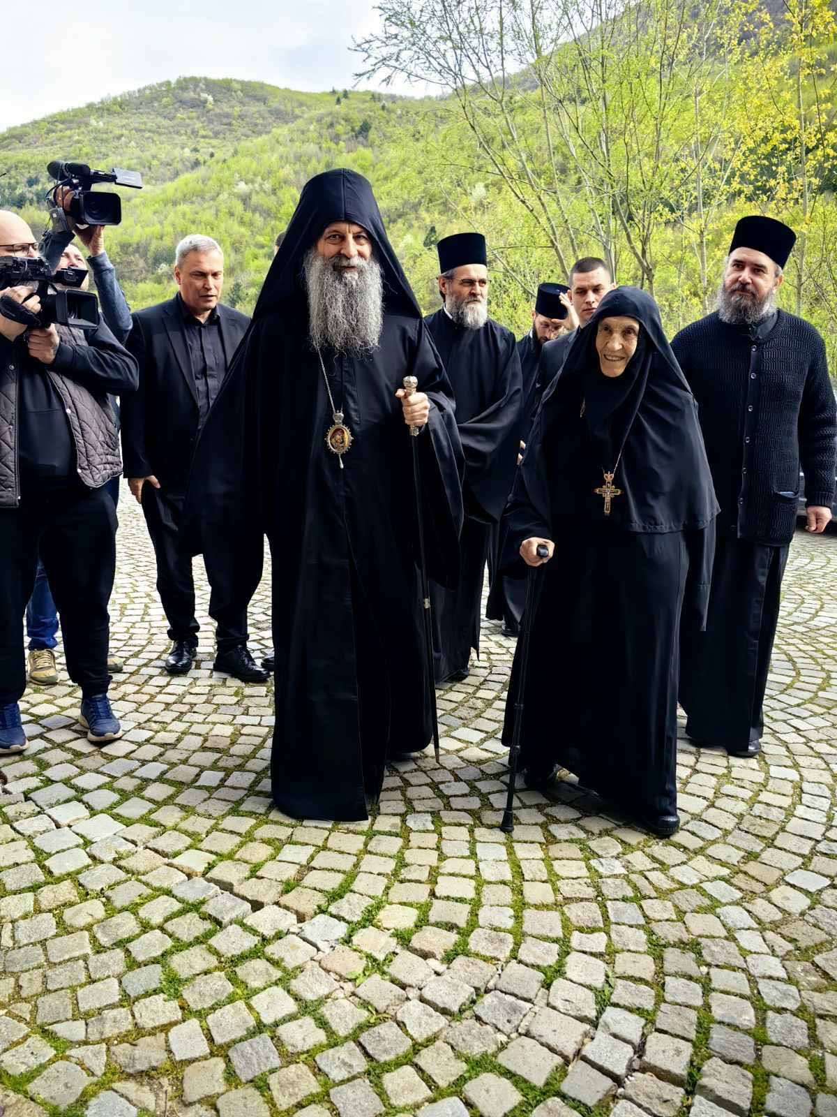 Долазак поглавара Српске православне цркве обележен је свечаним звонима древне светиње, чији се звук разлегао Пећком котлином. Патријарха су дочекали игуманија Харитина са сестринством, као и бројни верници и свештеници. По доласку, патријарх се поклонио чудотворној икони Богородице Пећке и моштима српских архиепископа и патријараха који почивају у тој светињи.