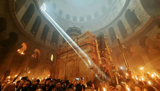 12.54 - Ускоро се очекује да Патријарх Јерусалимски Теофило Трећи сиђе до Гроба Господњег сам и започне молитве за Силазак Благодатног огња.