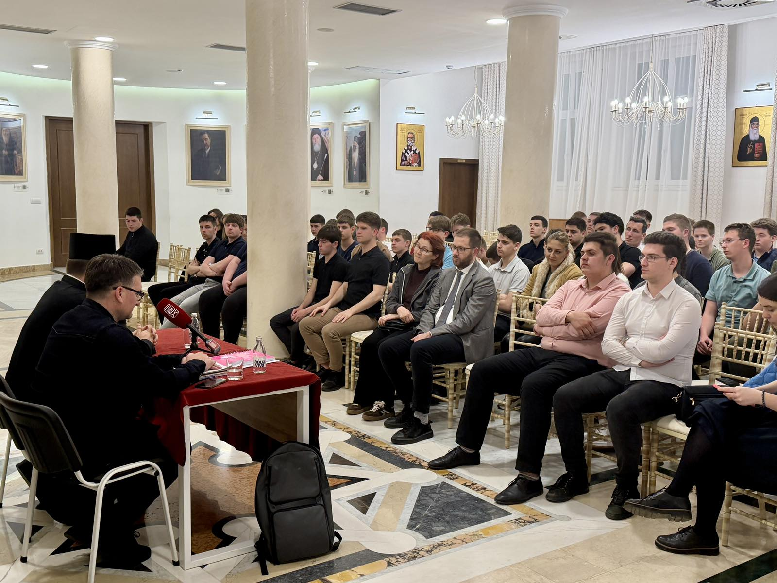На крају програма присутнима се обратио ректор Богословије протођакон Радомир Врућинић, који је захвалио предавачу и позвао сабране да истрају на светосавском путу.