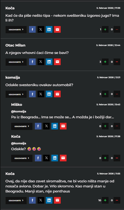 И у том медију коментари под текстом једнако су „надахнути“. Само, срећом, знатно их је мање. Просто се јави жеља да викнете колико вас грло носи – „људи, да ли сте свесни сопствене несвести?!“