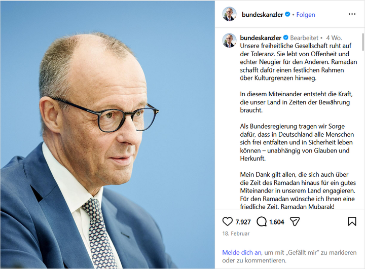 Мерц је у својој поруци Рамазан представио као празник који подстиче толеранцију и друштвену кохезију, али је изостанак било каквог осврта на хришћанску традицију изазвао критике. Тај пример, како се наводи, илуструје шири образац понашања политичких и друштвених актера.